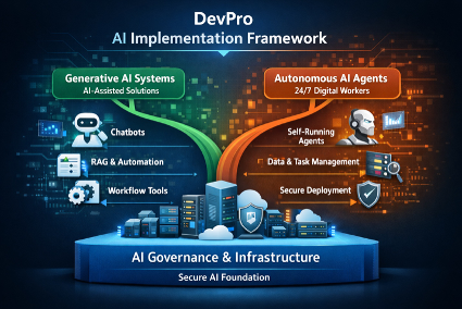DevPro helps organizations design, govern, and scale responsible AI — from strategy and compliance to cloud infrastructure and deployment.